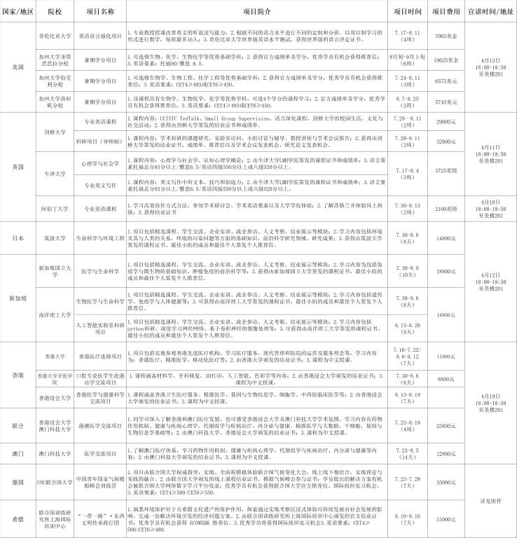 为深入推进人才培养模式改革,加快培养国际化高素质人才,根据学校鼓励支持学生到知名高校交流、参访和实习的相关政策,现将报名2023年暑假出国(境)短期线上线下访学项目通知如下: