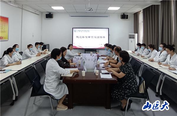 王翔宇代表医院向专家组汇报了医院“一院五区”建设与发展整体情况,并详细介绍了口腔医院2021年工作情况及疫情防控、2020年年检整改情况。