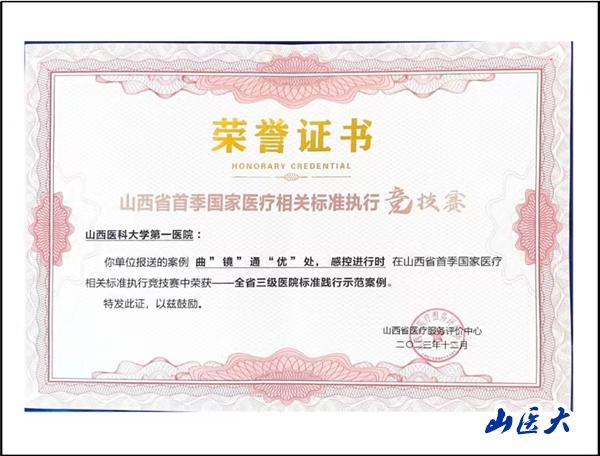 第一医院消化内镜护理团队参加山西省首季国家医疗相关标准执行竞技赛并获奖