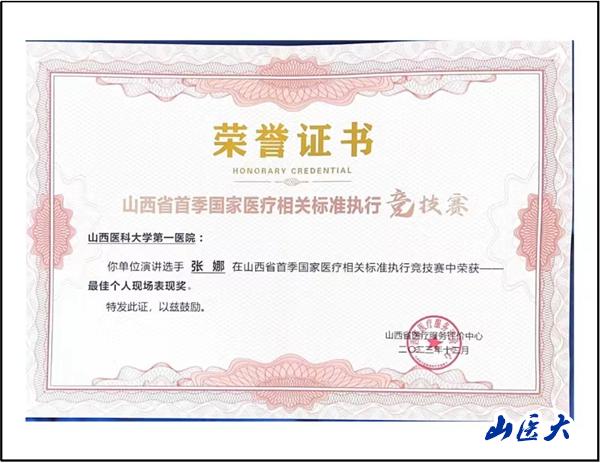 12月27日,历时近五个月的山西省首季国家医疗相关标准执行竞技赛落下帷幕,我校第一医院消化内镜案例“曲‘镜’通幽处,感控进行时”荣获标准践行示范案例奖,消化内科副主任护师张娜获最佳个人现场表现奖。