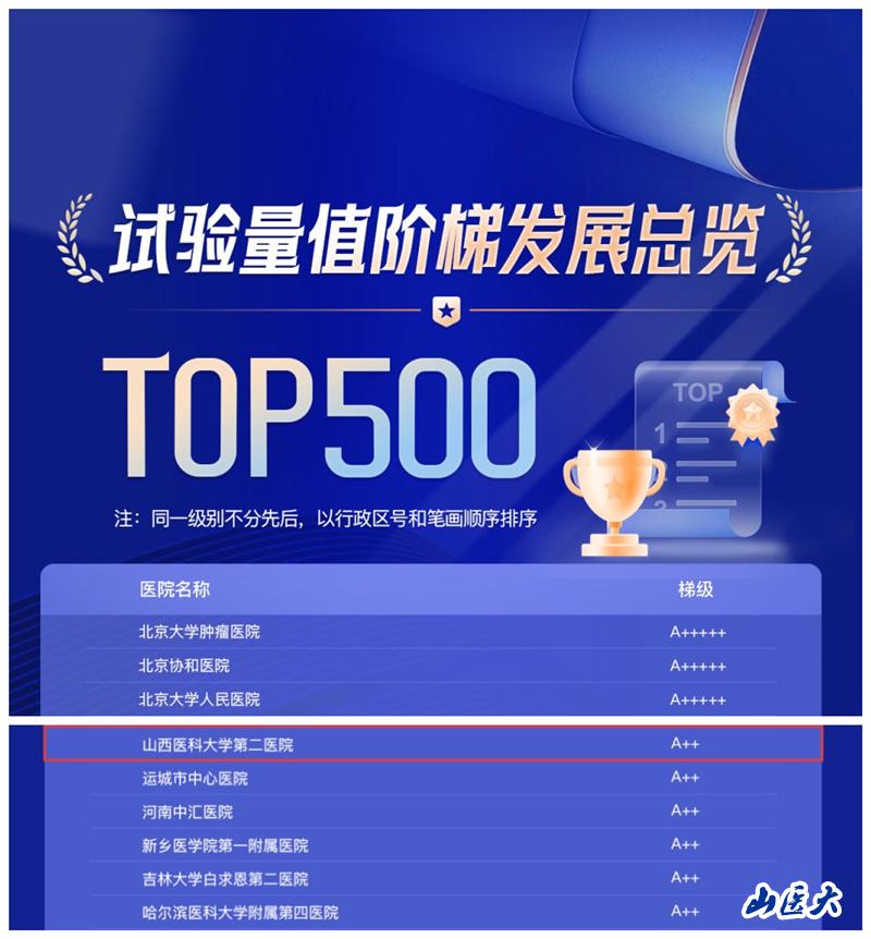 近日,《全国GCP机构药物临床试验量值阶梯发展导览》正式发布,我校第二医院凭借卓越实力,在全国众多药物临床试验机构中脱颖而出,荣膺药物临床试验量值A++等级,彰显了医院在药物临床试验领域的领先地位。