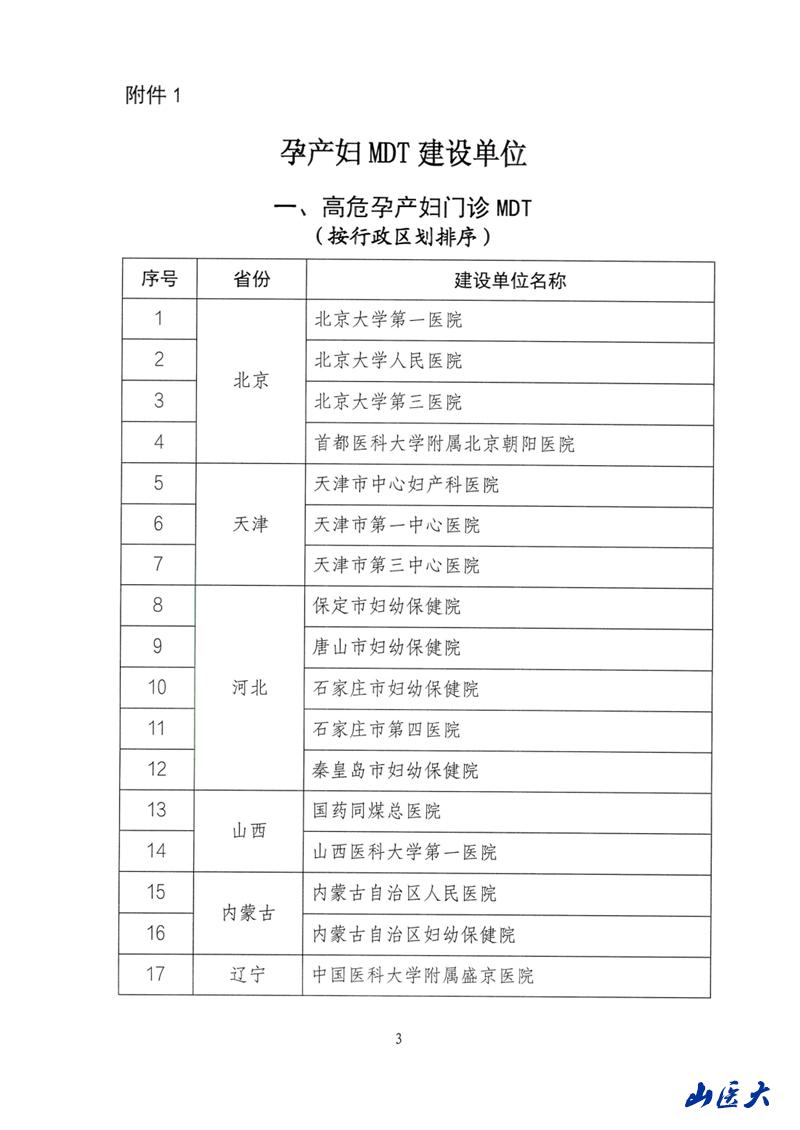 近日,国家卫生健康委发布了关于确定孕产妇多学科协作诊疗和产科亚专科建设单位的通知。经国家卫生健康委妇幼司审核,确定山西省7家机构为国家级孕产妇MDT建设单位,我校第一医院产科成为全省唯一一家同时荣获国家级高危孕产妇门诊MDT、母胎医学门诊MDT、危重孕产妇住院MDT的医疗单位。