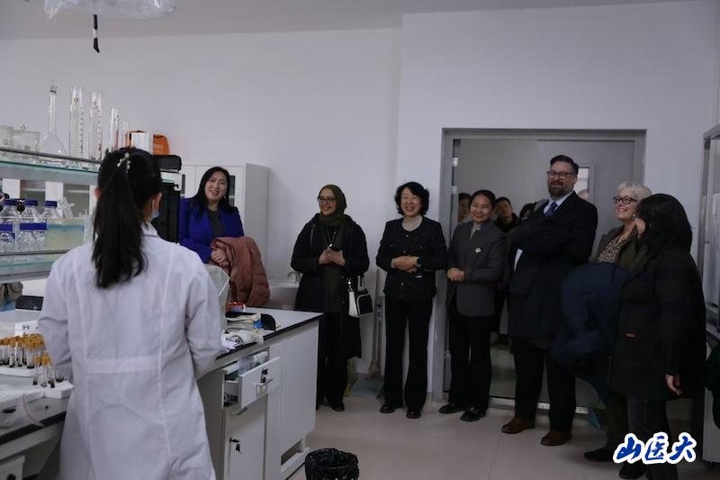 在学院领导的陪同下,英国专家组一行参观了公共卫生学院的实验教学中心、反向病原学研究中心院士工作站、流行病学和卫生统计学教研室等部门。公共卫生学院院长王彤详细介绍了学院的发展历程、教学设施及科研平台建设情况,专家们对学院的硬件设施和科研成果给予了高度评价。