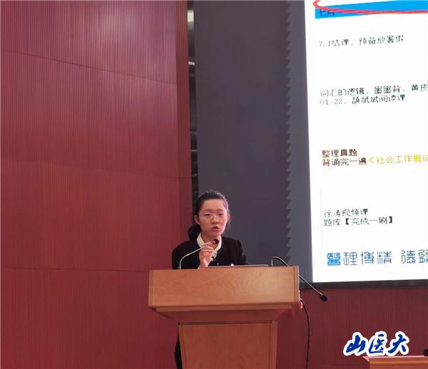 为进一步加强学院学风建设,营造浓厚的考研氛围,激发学院学生的考研积极性和主动性,5月30日下午,人文社会科学学院于中都校区图书馆多功能报告厅召开“研途有你,拼搏有道”考研经验交流会。会议邀请19级社会工作专业赵烨、付毅丽和常婷玉三位同学分享考研经验,学院党总支书记李薇、学院教师代表吕雪梅、分团委负责人田璐敏、辅导员张燕、杨卿、刘娜和樊小军以及2020级、2021级和2022级200余名学生参加会议。会议由田璐敏主持。