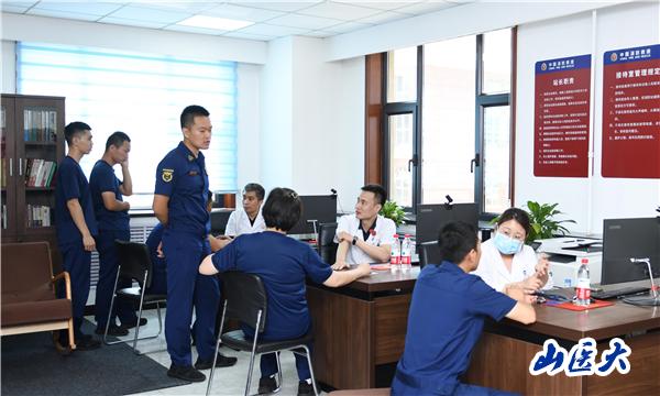 7月27日,在“八一”建军节即将来临之际,我校第二医院副院长李少刚带领保卫科科长关丽华,骨科、普外科、心内科、心电诊断科医师及相关工作人员到杏花岭消防救援大队北大街消防救援站,为站内66名队员进行义诊和健康宣教。李少刚向消防队全体消防员致以节日的问候和崇高的敬意,并代表医院向消防队员们赠送了防暑常用药品。