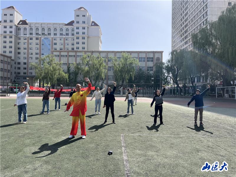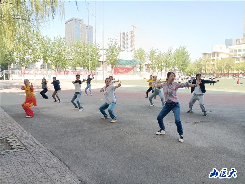 为丰富文化建设内涵,营造良好氛围,近日,公共卫生学院邀请国家级社会体育指导员、传统武术高级教练、一级裁判徐兴民在迎泽校区为全院师生教授健身武术。学院师生表现出极大的学习热情和兴趣,近一个月来大家利用课间时间走下网络,走向户外,强身健体,愉悦身心。
