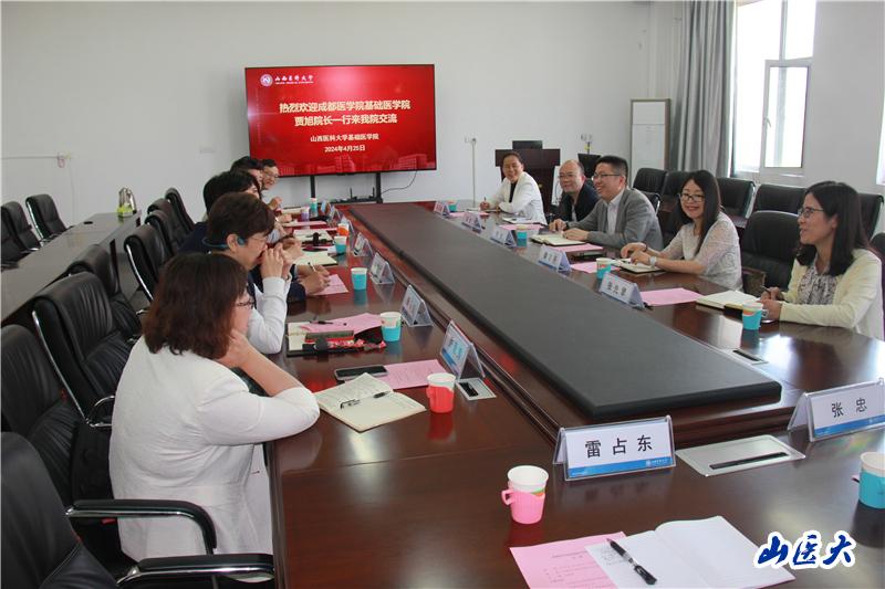 4月24—25日,成都医学院基础医学院院长贾旭一行来到我校基础医学院调研交流。基础医学院院长陆利,副院长张宇、刘继斌,学院教学科、科研科、教学督导等相关人员参加了交流会。