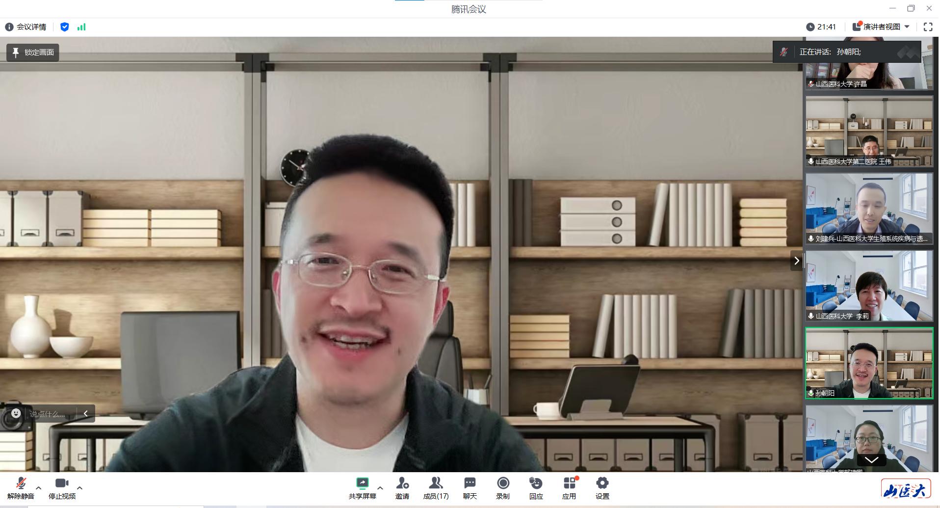 10月14日,学校生殖系统疾病与遗传发育研究所邀请华中科技大学同济医学院附属同济医院孙朝阳教授在线上指导国家自然科学基金申报工作,研究所30余名师生参会。